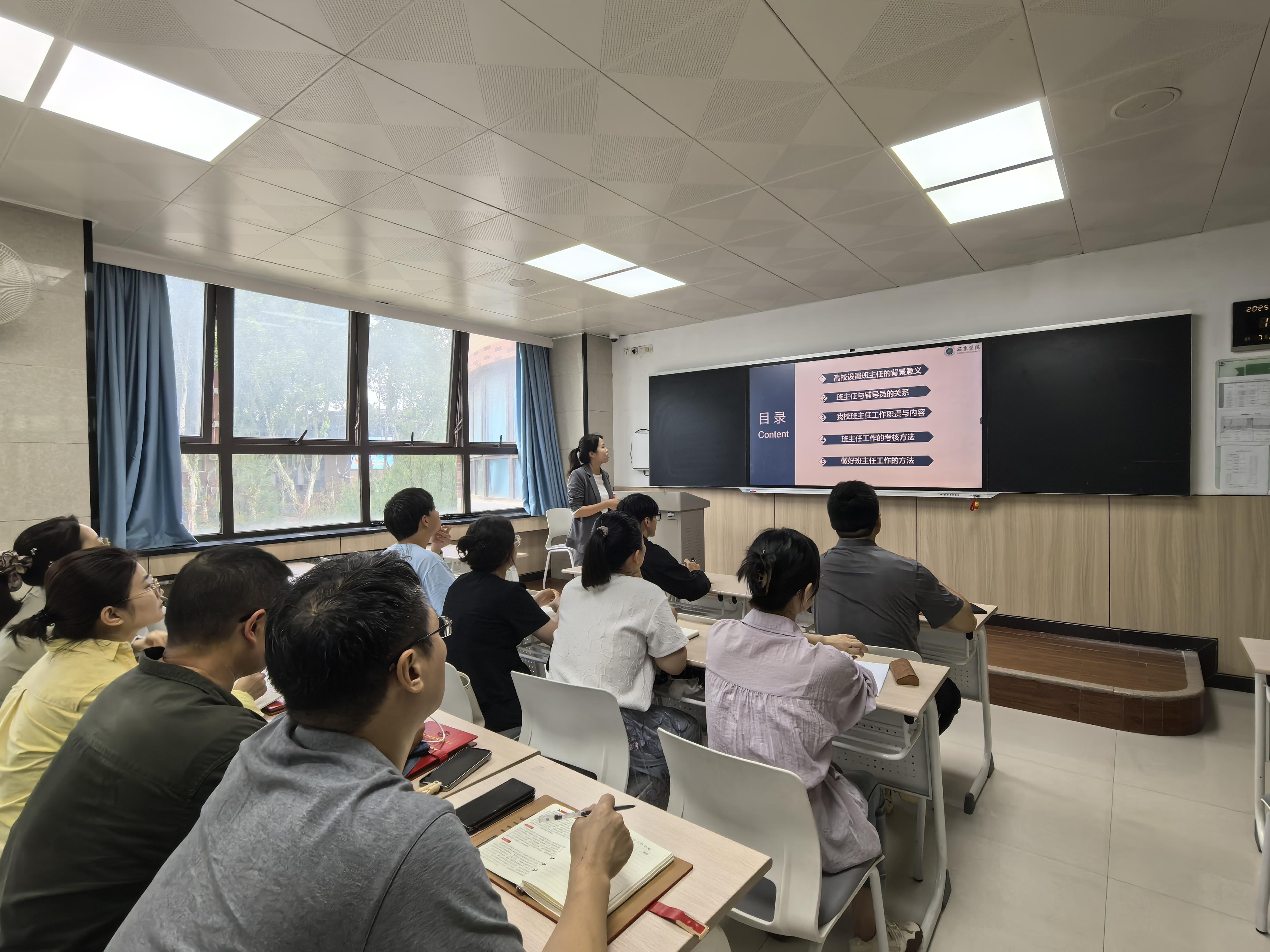 会上张爽副院长围绕“班主任角色定位”展开深度讲解。她以“高校设置班主任的背景意义”为切入点,清晰描述班主任与辅导员的协同关系,重点剖析《西京学院本科生班主任工作实施办法》中“专业认知教育、学业咨询指导、学风建设推进”三大核心职责,并通过“工作考核方法”与“高效工作路径”的详细讲解,帮助班主任掌握工作技巧,提升班级管理能力。随后,她围绕秋季学期的安全教育工作展开了细致的讲解和重点强调。她强调,首先必须清晰把握当前的安全形势,并协助辅导员精心组织好安全教育班会,为学生筑牢坚实的安全意识基础。接着,她全面解析了高校安全教育要点,使班主任明白“教什么、怎么教”确保各项安全知识能够有效传达给学生。最后她希望新聘班主任在本次培训会开完之后能够尽快熟悉班级情况,持续推进班主任工作深入有效开展。