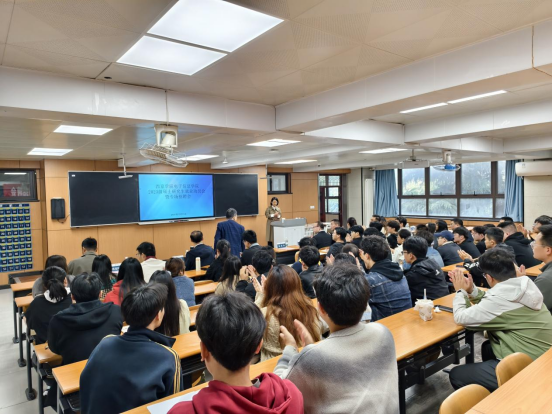 随后,研究生处聂满堂科长为同学们进行了详实的就业形势分析与政策解读。他结合详实的数据,深入剖析了当前硕士研究生就业面临的机遇与挑战,帮助同学们对就业环境有了更加清醒和全面的认识。同时,聂科长分享了往届毕业生的成功就业经验,并重点介绍了国家及地方出台的一系列人才引进政策与优惠措施,鼓励同学们拓宽视野,主动了解政策红利,积极到国家重点行业、关键领域及地方经济建设主战场建功立业。