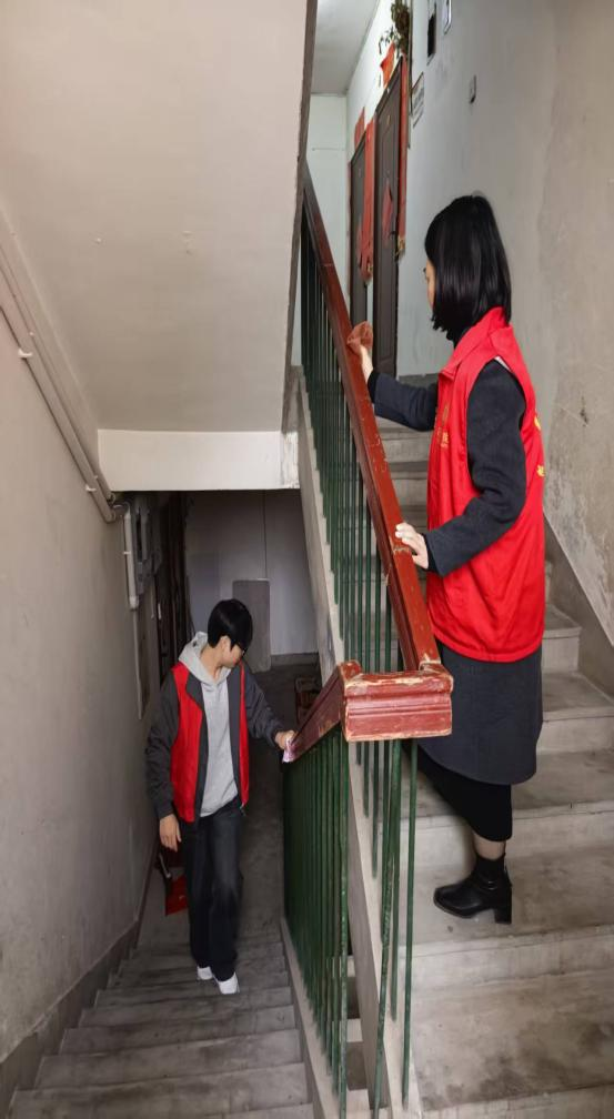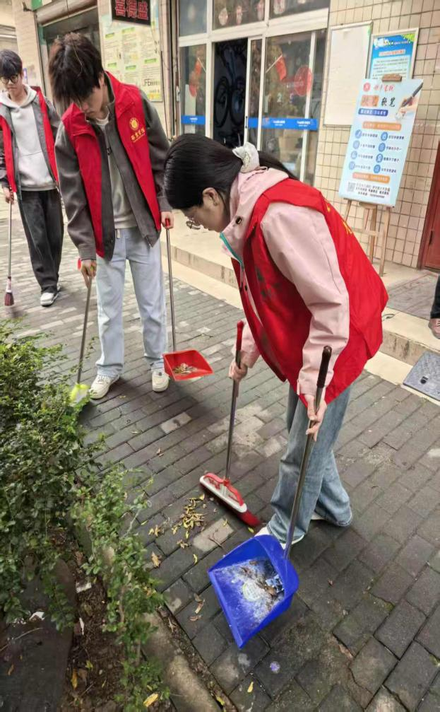 完成老人家中的清扫后,师生党员们又将爱心延伸到整个小区。他们手持清洁工具,认真打扫小区楼道,清理公共区域的垃圾和杂物。用实际行动诠释了新时代青年的奉献精神!