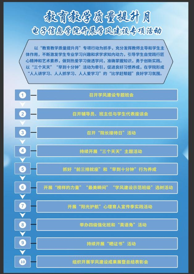 电子信息学院将始终坚守立德树人初心,以学风建设为突破口,持续赋能人才培养质量提升,全力培养更多适应时代发展需求的高素质电子信息人才,为高等教育事业发展贡献坚实力量。