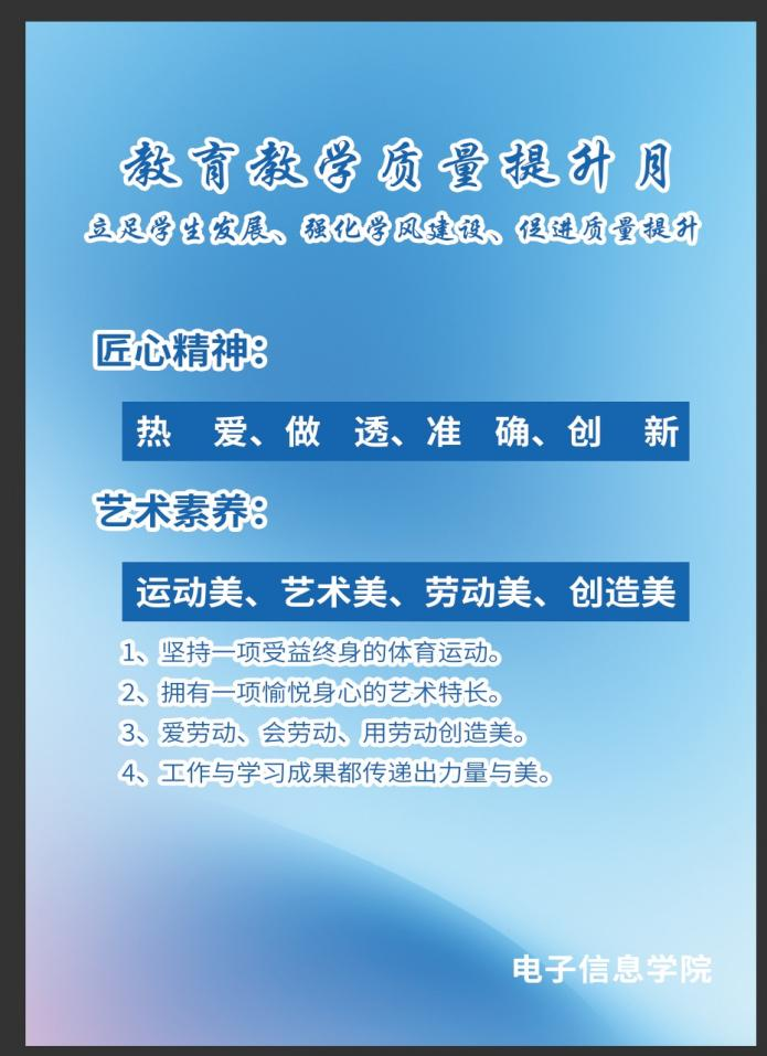 学风是治学精神的集中体现,质量是学风建设的核心要义。学院坚持将“质量意识”贯穿学风建设全过程,构建“全方位、多层次、广覆盖”的质量文化传播矩阵,让“追求卓越”成为师生的思想共识与行动自觉。