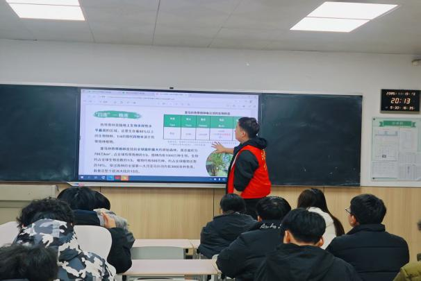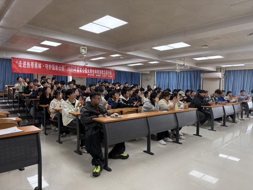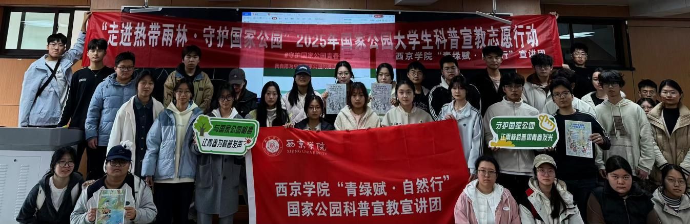 “青绿赋·自然行”宣讲团在西京学院二号教学楼举办“走进热带雨林·守护国家公园”主题宣讲,300名师生线下参与,线上覆盖超1500人次。