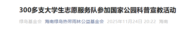据悉,此次国家级科普宣教志愿行动由中共海南省委社会工作部指导,海南省林业局、海南热带雨林国家公园管理局主办,海南绿岛热带雨林公益基金会等单位承办,被纳入海南省2025年“6+N”志愿服务品牌项目,吸引全国近200所高校370余支团队参与,旨在凝聚社会力量推进国家公园科普宣教工作。自行动启动以来,西京学院“青绿赋·自然行”宣讲团迅速开展系列实践活动。