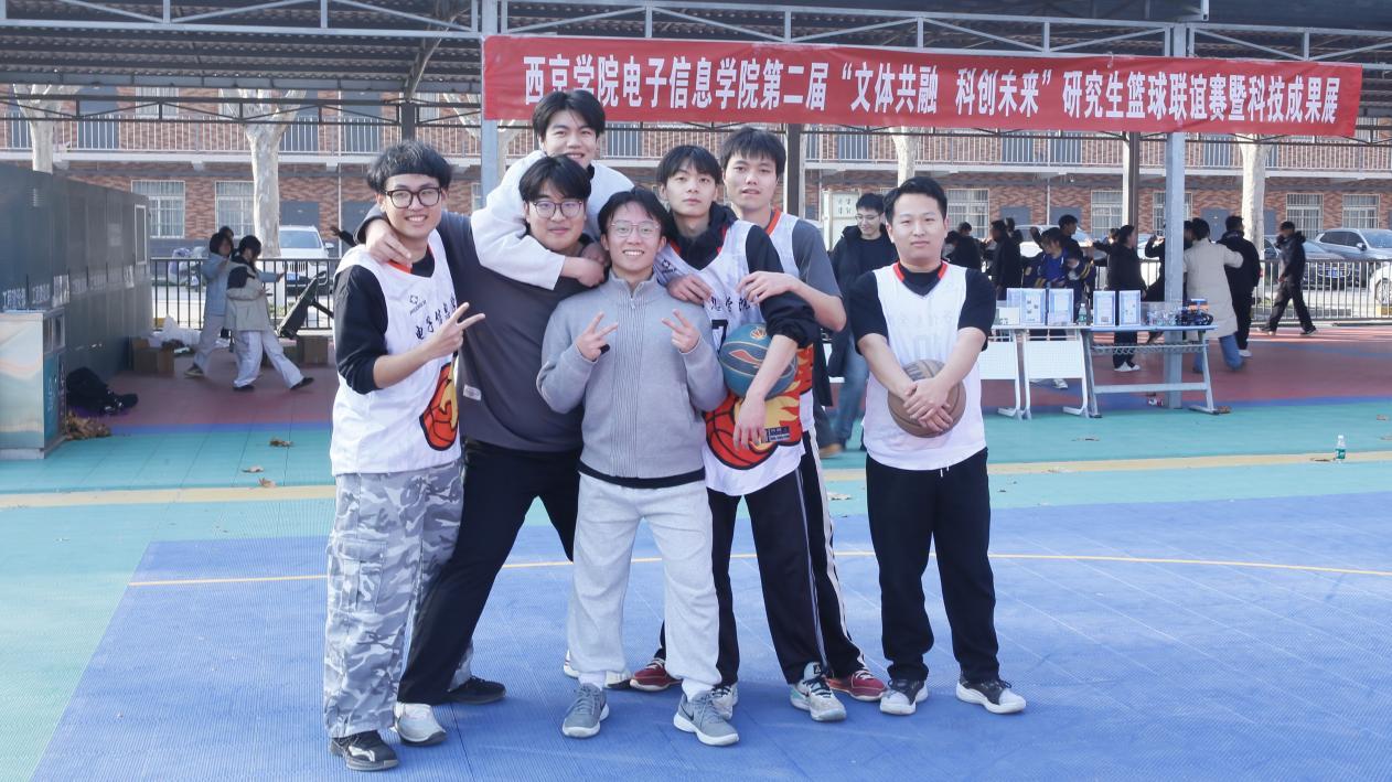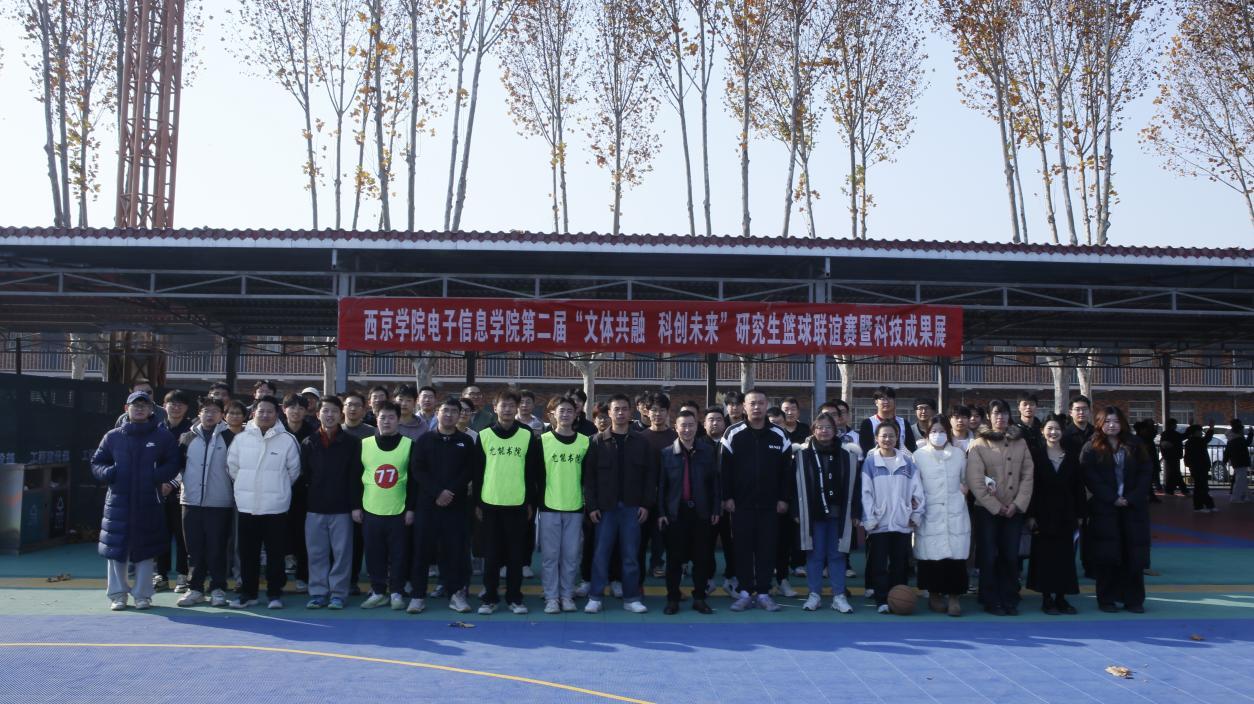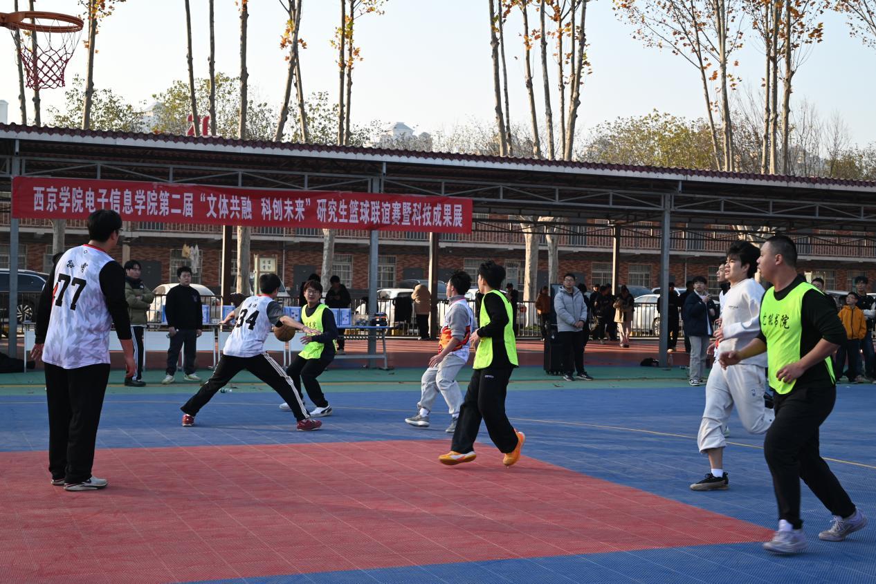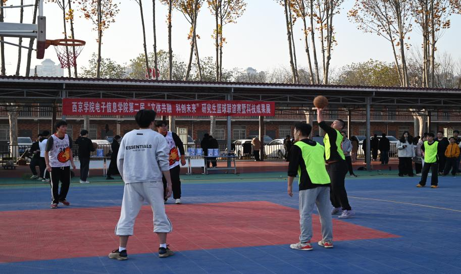 为深入贯彻国家“体育强国”与“科技强国”重大战略部署,全面落实我校“身体天天炼”特色育人理念,为学校人才培养和校园文体事业高质量发展注入新动能。12月5日,西京学院电子信息学院“文体共融,科创未来”研究生篮球联谊赛暨科技成果展在学校篮球场成功举办。本次活动以篮球赛事为纽带,以科技展示为延伸,创新增设趣味投篮环节,为全院研究生搭建了强身健体、学术交流、协同进步的多元平台,让冬日校园洋溢着青春活力与创新气息。